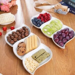 Ceramic three compartment snack tray