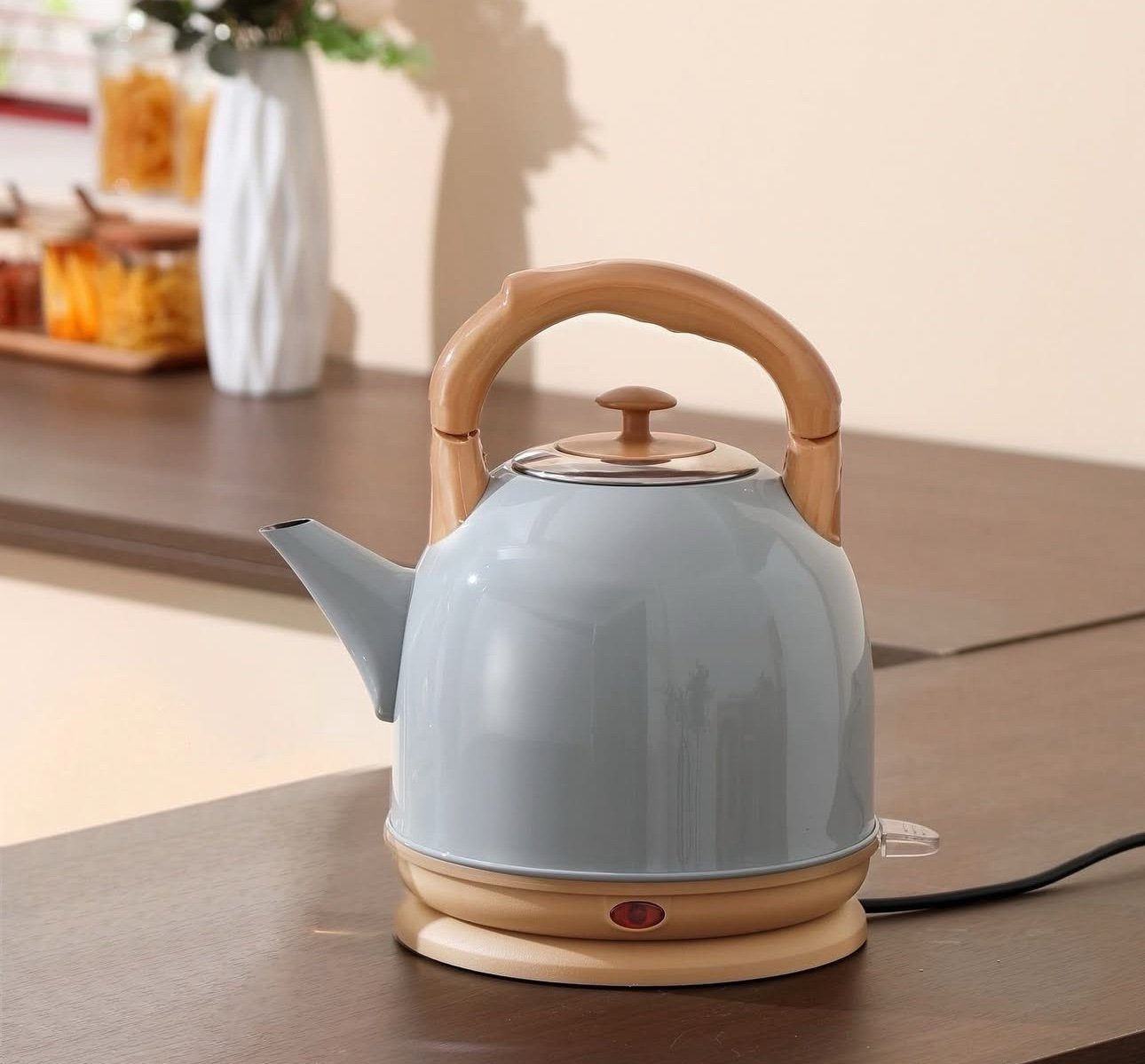 Don’t settle for slow boiling! The Rapid Boil Technology inside Stainless Steel Electric Cordless Kettle uses 1500W of power to quickly boil up to seven cups of water in less time than it takes a microwave or stovetop*! The stainless steel interior is built to last, and it looks great in any modern kitchen. The kettle comes with a removable anti-scale filter that prevents mineral buildup from passing through the spout, so you get fresh, hot water for tea, hot cocoa, instant meals, oatmeal, French press coffee, and more! Other features include: small batch boil (1-3 cups), clear-view water window with level markings, boil/dry protection, 360¬∞ swivel base, on/off switch, pull-up lid, power indicator light, cord wrap, 2-year warranty.