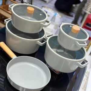 Bring the taste of Korea into your kitchen with this elegant ceramic cookware set. Designed with a sleek cream finish and wooden accents, it’s perfect for hot pots, stews, and everyday cooking.