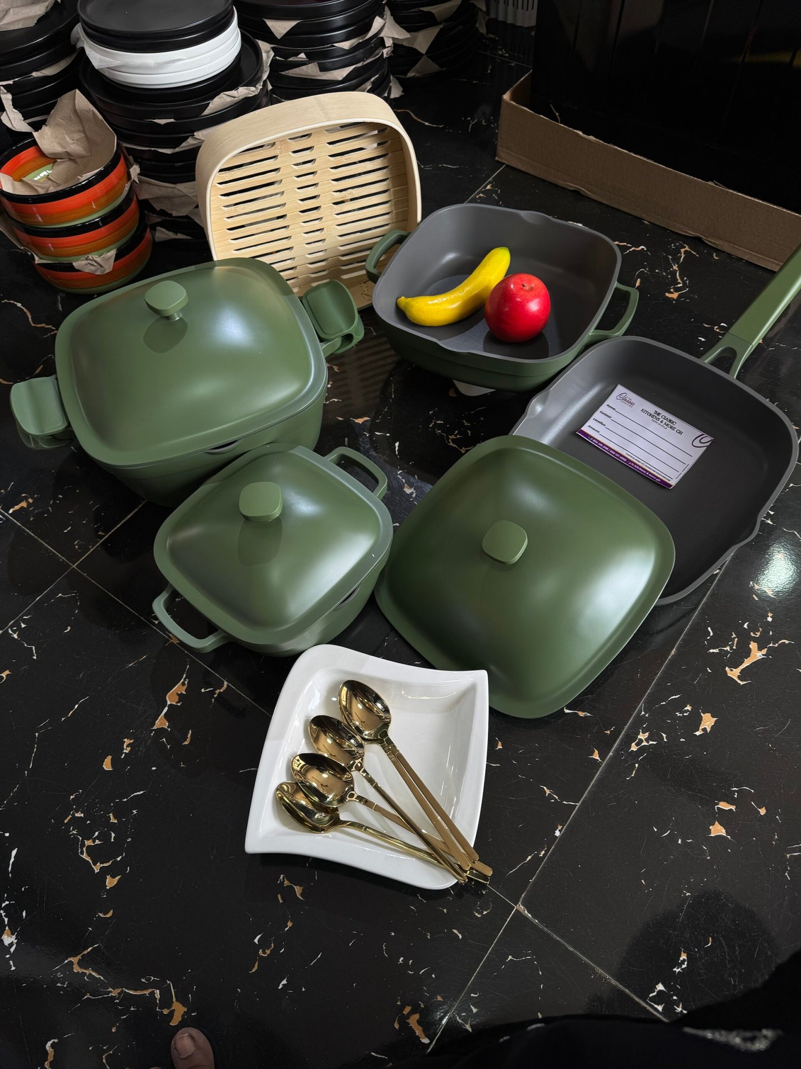 Transform your kitchen into a space of style and function with our premium green cookware set.