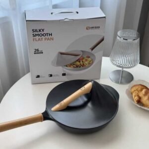 26cm Flat Frying Pan is perfect for daily cooking. Its silky smooth non-stick coating allows food to slide right off, using less oil for healthier meals. Comfortable grip handle ensures safe, easy handling while cooking.